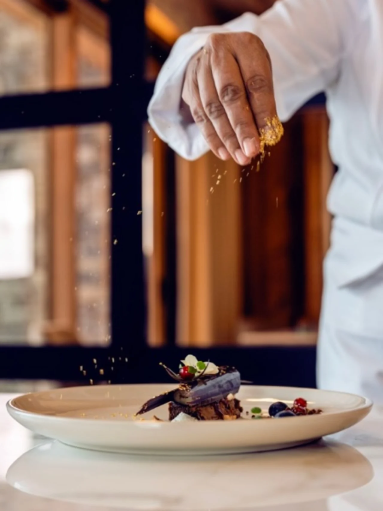 La gastronomie occupe un rôle similaire. Ici, pas de volonté d’impressionner par le spectaculaire, mais plutôt une compréhension précise des attentes contemporaines : une cuisine qui conjugue produits locaux, technicité, lisibilité et réconfort. L’offre culinaire s’intègre au rythme du séjour et accompagne les moments-clés de la journée — du petit-déjeuner pensé pour les skieurs aux dîners plus feutrés où l’on retrouve l’esprit d’une table alpine contemporaine.