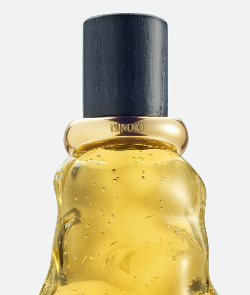 Si le nom Mezzanotte (minuit) évoque l’heure sombre, chacun des trois parfums décline un moment de cette temporalité et révèle une pyramide olfactive soigneusement construite. Pour Hinoki, la première sensation est celle du bois vert : le cyprès japonais (hinoki) se pose sur une base enveloppante de sapin baume, puis s’enrichit d’une note de patchouli qui lui donne chaleur et profondeur. Le nez ici joue sur la verticalité — des tonalités fraîches en tête vers des accents plus secs dans le cœur, pour une tenue contemplative.