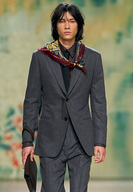 Véronique Nichanian propose un vestiaire Hermès où l’iconique Carré Hermès habille avec subtilité des dandys à l’élégance contemporaine !