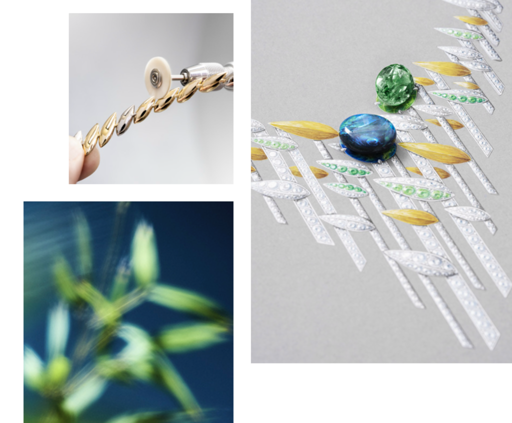 . Aujourd’hui, avec Bamboo, la Maison parisienne poursuit son exploration naturaliste en sublimant un motif rare dans son répertoire : la silhouette élancée et graphique du bambou, symbole d’élégance, de force et de flexibilité.