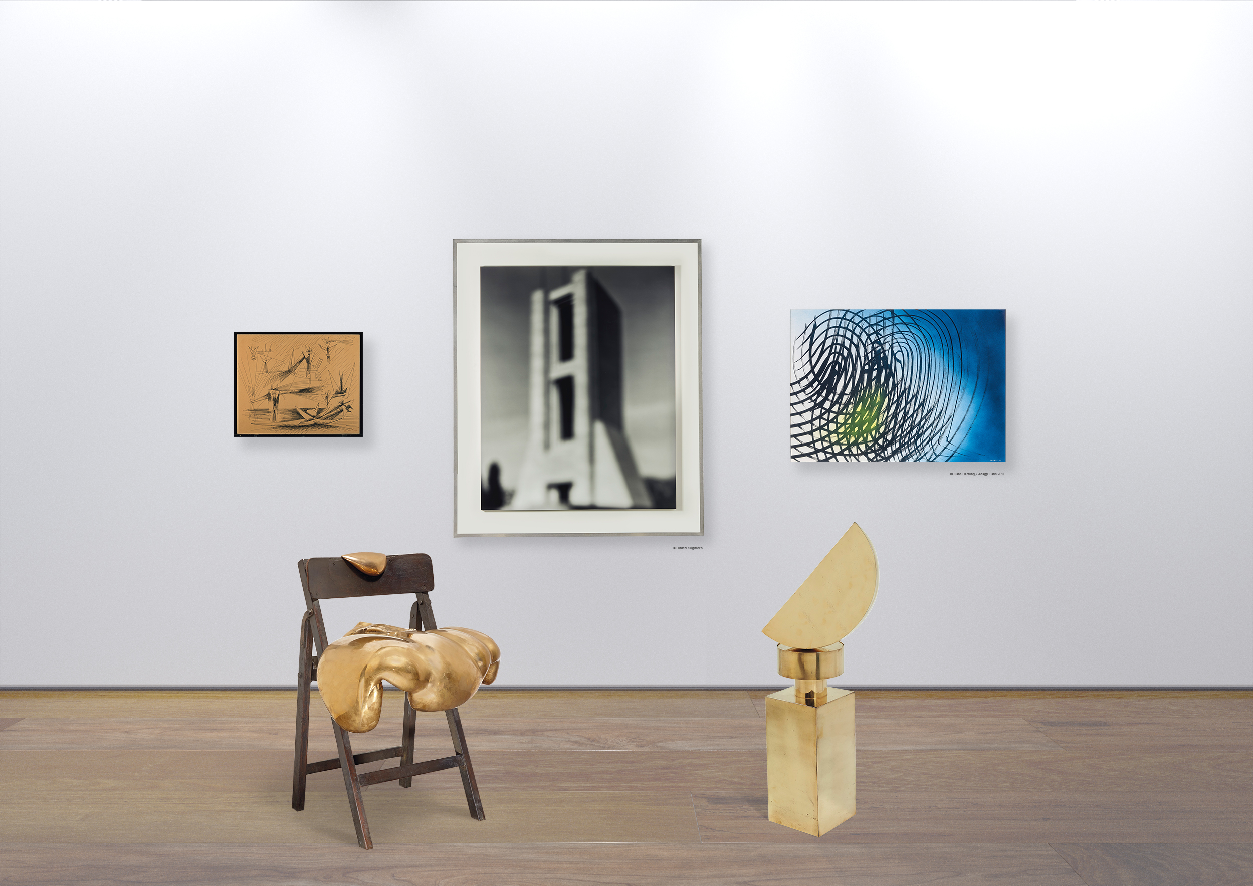 C’est ainsi que l’on voit des photos de Robert Mapplethorpe ou Nan Goldin, côtoyer une Table Bleue d’Yves Klein, des dessins de Jean Tinguely et Paul Delvaux… Des toiles d’Arman ou Hans Hartung aux côtés de la Chaise ‘Expansion signée César !
