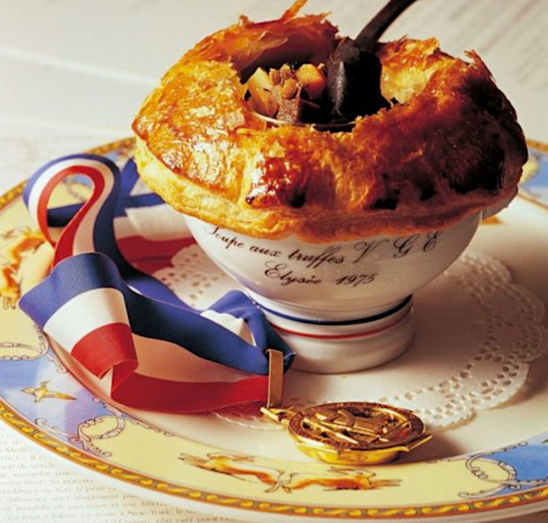 Ce n’est que plus tard que Paul Bocuse livrera l’inspiration derrière son plat signature. Il avait mélangé deux inspirations, une soupe de poulet et bœuf aux truffes qu’il avait goûté avec des fermiers ardéchois, et une truffe recouverte d’une croûte que son ami Paul Haeberlin avait un jour cuisiné pour lui.