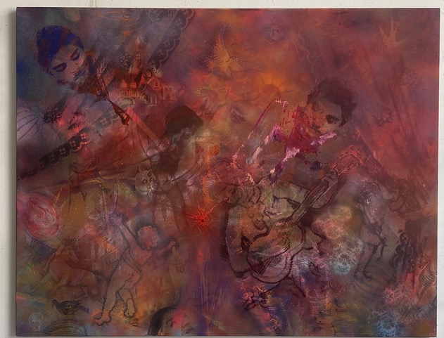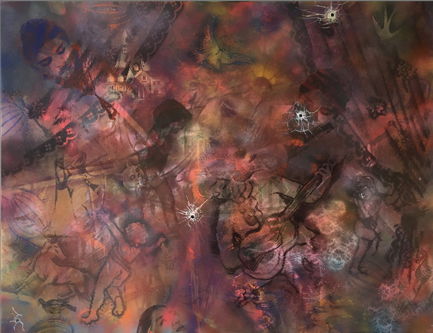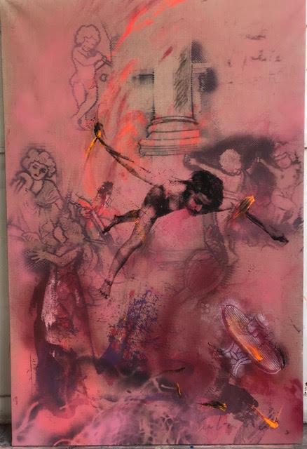 This remix of three paintings begins with “Digital Opera” in 2012, marked by the excitement of the digital era’s early days. Transformed into “Endgame” after the Bataclan attacks in 2015, the painting takes on a darker turn, reflecting a time of grief and loss.