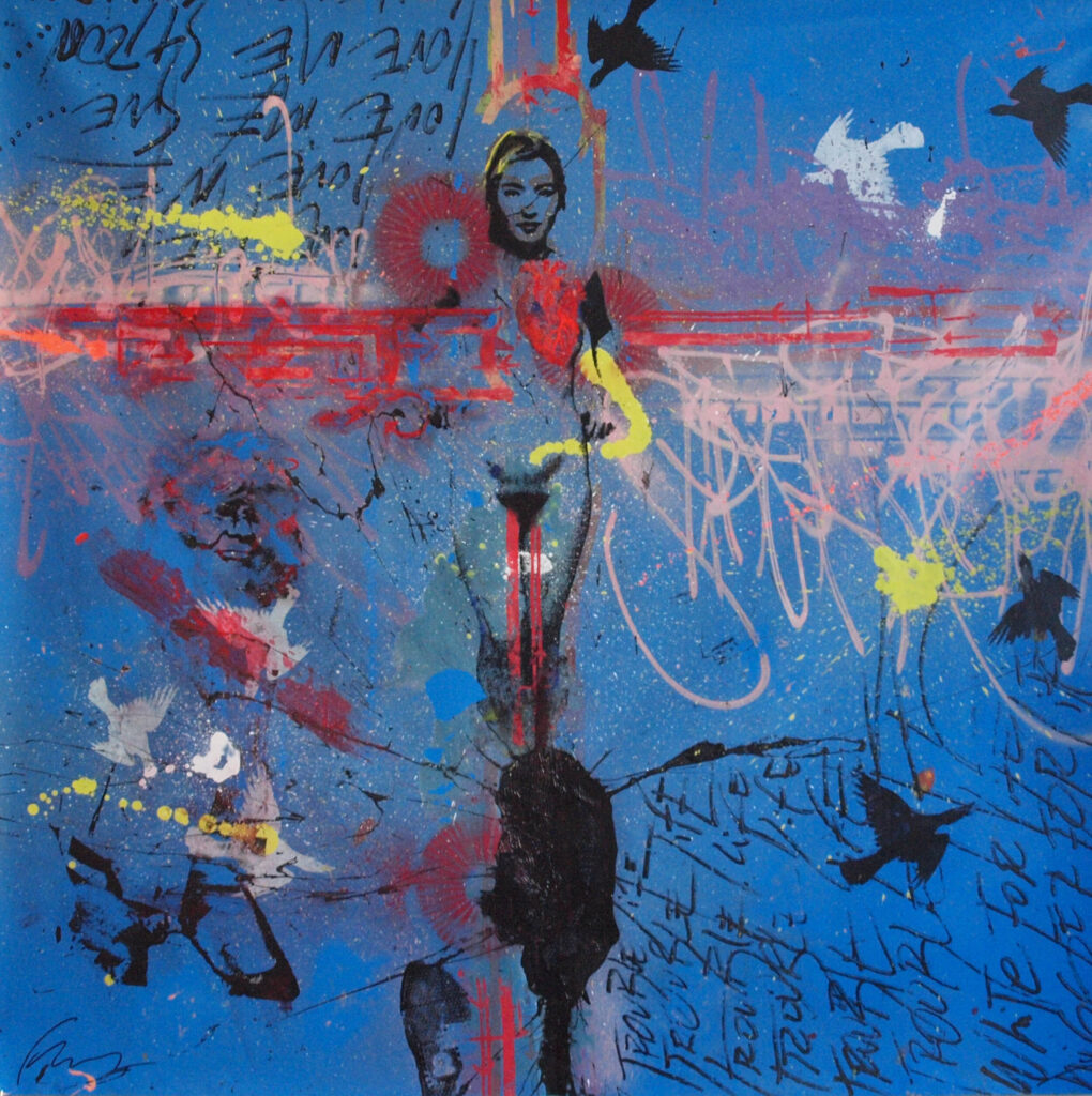 Fury is thus able to collaborate with different artists, like the graffiti artist Shuck One. In 2012, they imagined together pieces employing various techniques such as airbrushing, acrylic, and screen printing on canvas. An ability to merge different styles to produce visually captivating and innovative works, such as “Cities of the Red Night,” “Entrails,” “Remixx the City,” or “The Day After.”