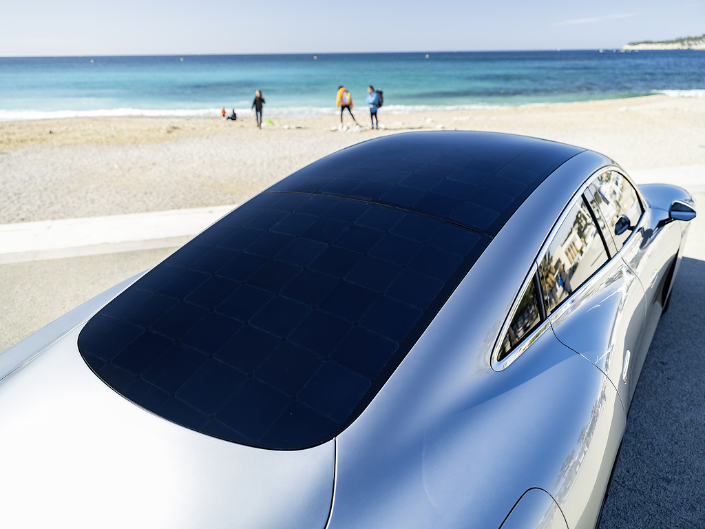 Then, the Vision EQXX began its descent towards the north of Italy, where regenerative braking came into action, but that’s not all. With 117 solar cells achieving 20% productivity, the roof of the Vision EQXX powers a 12-volt battery that itself powers auxiliary functions such as the infotainment system or the navigation. According to Mercedes, the solar roof can add 25 km of range during a 1000 km trip by reducing the charge on the propulsion battery.