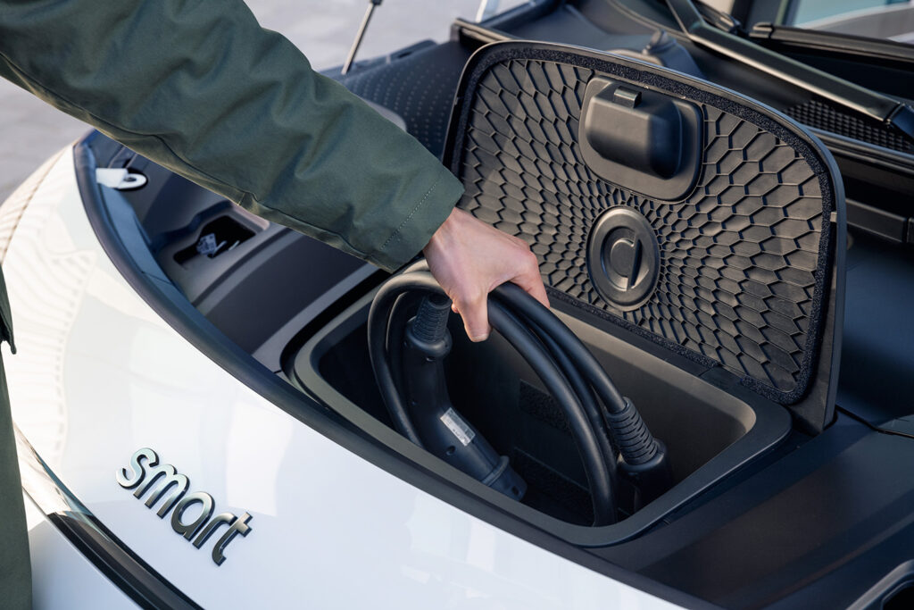 Smart #1 can be recharged on an AC power outlet with a maximum power of 22 kW, while the DC load can reach 150 kW.