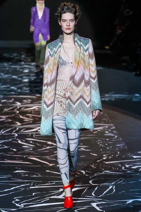 And so, the Missoni knit takes on long jackets and capes with a masculine cut stitched in certain places with narrow lapels. At times you can distinguish a jacquard motif expanding out as never before, distorting the abstract, spectacular, and emblematic identity of the Missoni zigzag in the meantime. The woman of next winter is bound to be ultra-feminine, playful, and ever so free !
