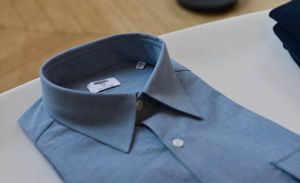 La collection résultait ainsi de la rencontre de deux univers ayant mis le Made In France au cœur de leur propos. En cela, la rencontre tient d’une osmose. D’un côté Maison Gabriel, fondée par Cyril Arvengas et sa maîtrise des costumes et chemises sur-mesure dans les règles les plus strictes du luxe et du savoir-faire français et italien… De l’autre, Village Paris, fondé par Romain Baret: un vestiaire qui propose une ligne au style casual sportswear, fleurant les influences américaines exécutées dans des coupes soignées.