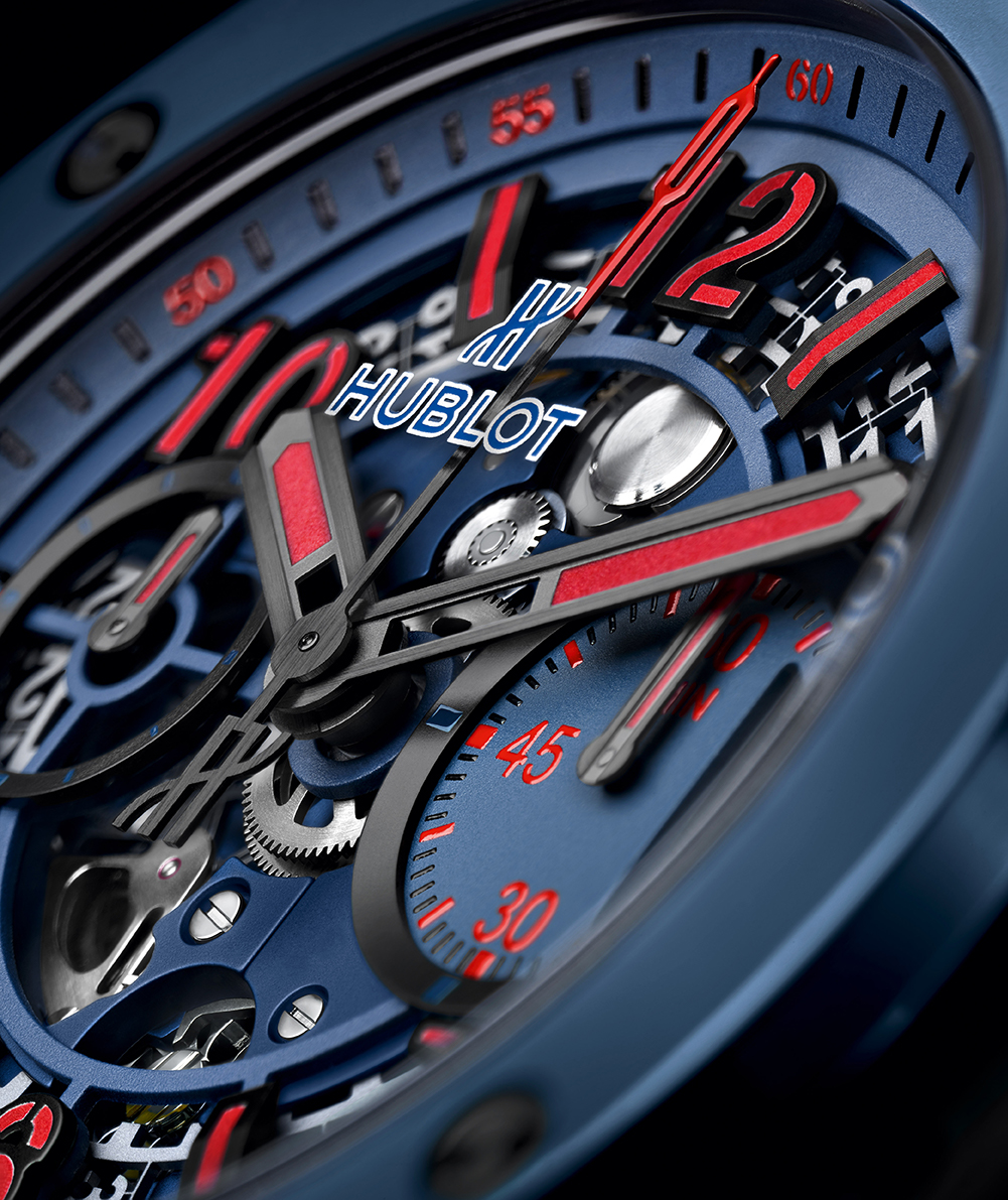 La Hublot Big Bang Unico Special One présente ainsi une élégance toute personnelle — parée de bleu, couleur fétiche de José Mourinho, la pièce vient se compléter de rouge. Une lunette et un boîtier en céramique de 45mm teintés directement dans la masse, le rouge déride ici le mythique squelette de la Big Bang avec la pointe d’humour si propre à Mourinho. Côté mouvement, Unico est une nouvelle fois animé du calibre HUB1242… Le tout bien évidemment visible par le fond en saphir transparent ! Avec son bracelet en alligator, la Hublot Big Bang Unico Special One offre une vision tout à la fois sportive et impeccable. Mais une vision tout de même limitée à 200 exemplaires.