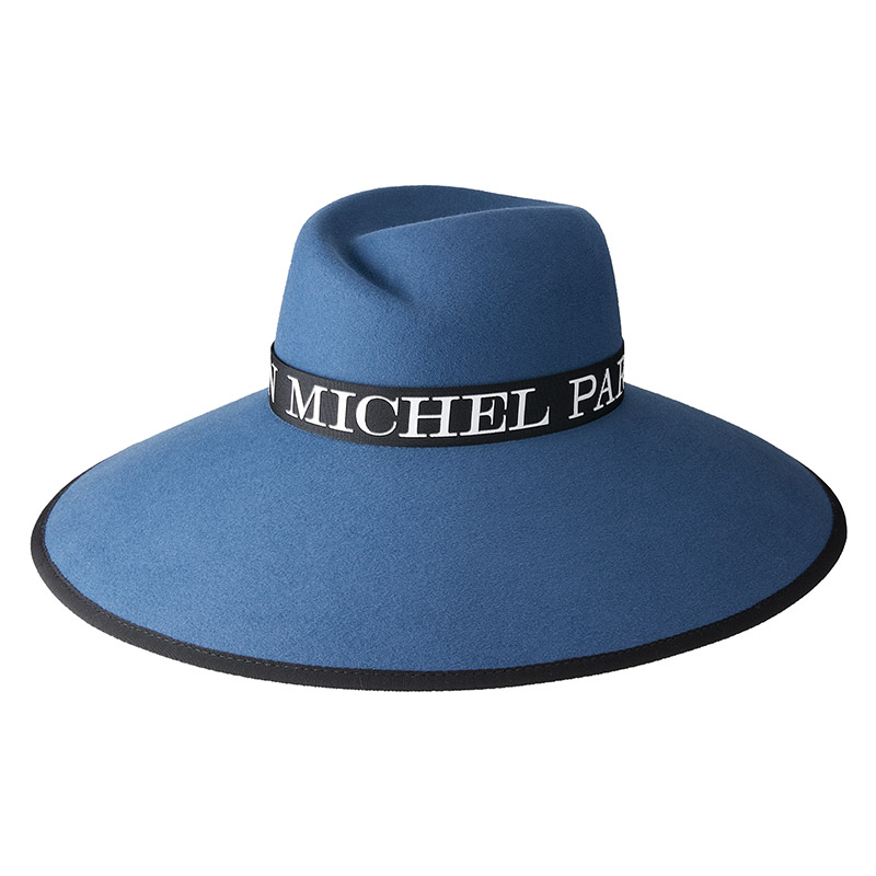 Ensuite, on perçoit toujours cet appel de l’océan, de la mer avec des bleus, des bleus extrêmement différents, certains plus foncés et profonds, qui donnent une sophistication très élégante aux chapeau Michel.