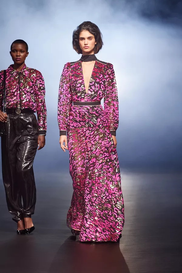 Mieux, cette robe en lurex et velours de soie dévoré, singeant un motif léopard rose et or, soutient cette sensation — une sensation de liberté de style et de vie, où une femme confiante exprime un glamour sans compromis !