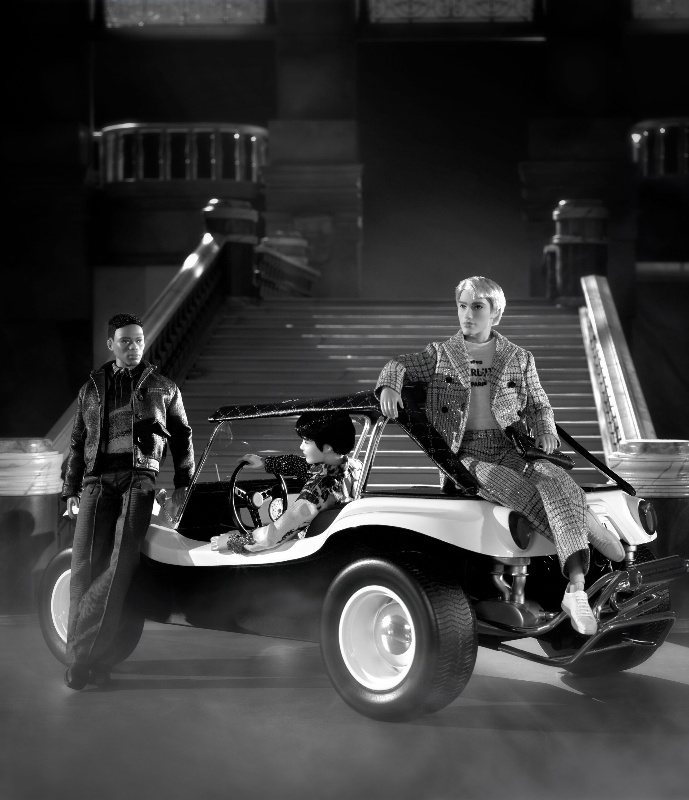 La collaboration est inédite: l’iconique maison Berluti habille Ken, l’icône pop de la mode masculine, autour de trois poupées aussi audacieuses qu’élégantes !