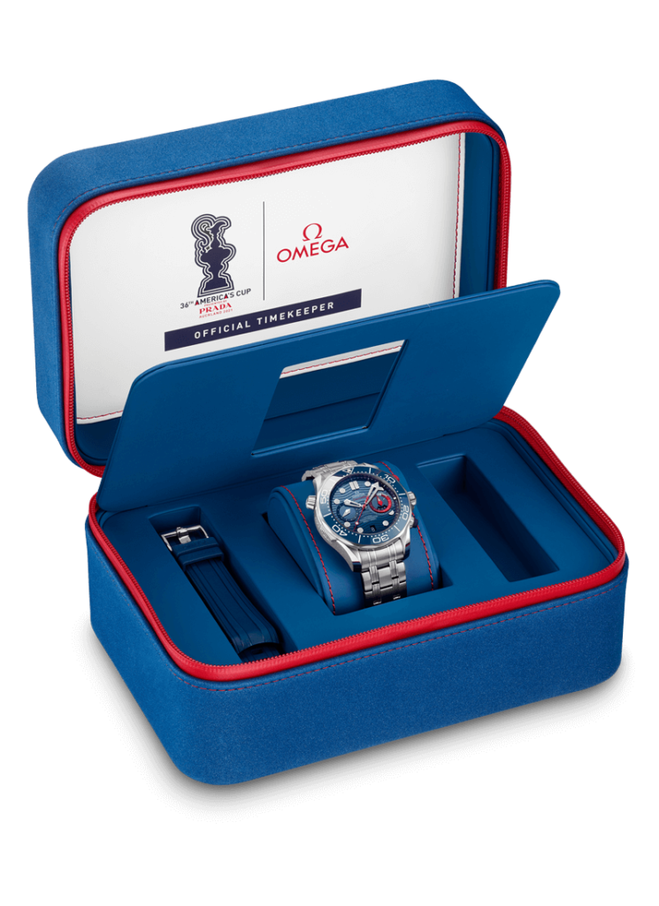 Omega satisfait ainsi leur passion commune pour l’innovation, la technologie, la vitesse et la précision avec la Nouvelle Seamaster Diver 300 Chrono America’s Cup.