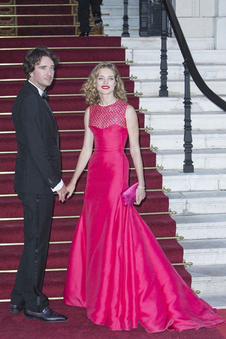 Natalia Vodianova porte une robe rouge Christian Dior haute couture de la collection automne-hiver 2013-2014 pour le gala de charité Love Ball à Monaco.