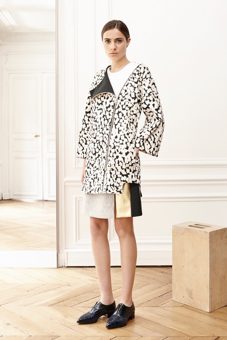 Ainsi la veste perfecto s’imagine dans une veine raffinée dirigée dans un esprit “allure couture moderne“. La superposition est de mise ; une superposition d’intention et de graphisme : un peu long, un poil oversized, taillé comme il faut, le perfecto s’imagine à revers noir sur motif graphic duochrome, tandis que des découpes douces affinent l’allure de la pièce. Les pans deviennent motif quand les références animalières se brouillent dans un monochrome appréciable…