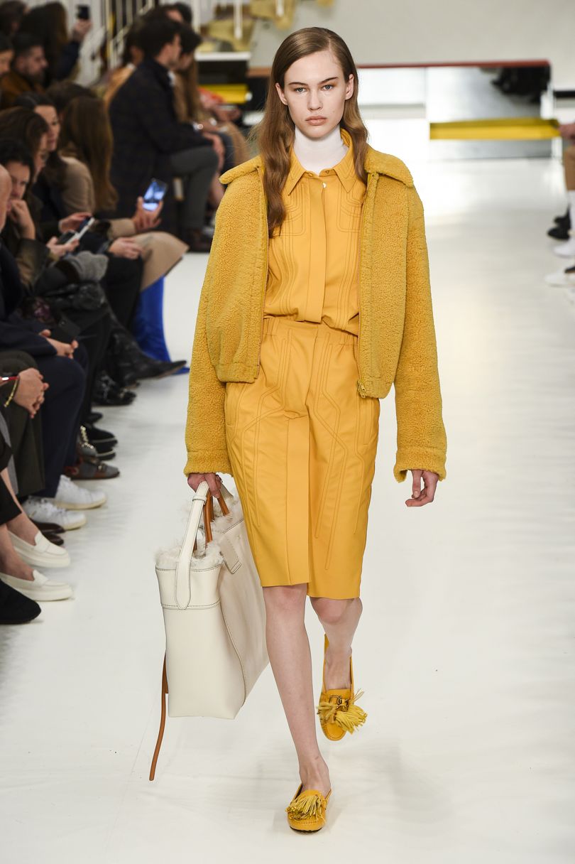À Milan, la maison Tod’s faisait défiler une collection aux accents classiques — travail du cuir et matières précieuses, c’est une saison toute en fonctionnalité que développe la maison italienne. Il faut dire que depuis 2014, la maison de Diego Della Valle s’attache à définir son style autour d’une élégance quotidienne. Un casual chic qui puise dans les inspirations de sa mode : des lignes raffinées et une allure mesurée. La saison Automne/Hiver 2018/19 n’échappe ainsi que très peu aux gimmicks de la maison. Pensée pour une femme toujours en mouvement, la collection fait la part belle aux tonalités automnales dans un vestiaire très chic. Pièces vedettes de ce défilé : les chiots portés aux bras, et un nouveau Gommino accessoirisé !