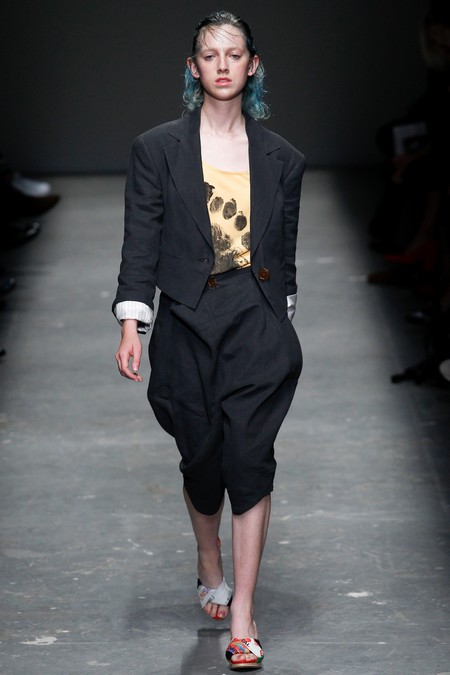 On le sait, Vivienne Westwood a fait le parti-pris d’un punk en provenance direct du Londres ouvrier des années 70-80. Si la flamboyante Westwood a depuis fait affaire, elle n’en reste pas moins une femme engagée : lors de son défilé Printemps/Été 2016 pour sa ligne Red Label, la Londonienne a fait défiler une horde de jeunes brandissant des banderoles aux messages politiques très clairs – extinction des lumières, hurlements de sirènes… Projecteurs s’allument, braqués sur un groupe ; les pancartes : « L’austérité est un crime » « La fracturation hydraulique est un crime ». Rien ne laisse présumer que son esprit de révolte s’est fait avaler par le système de la mode. La reine de la rébellion est ! Et pas question de douter de son authenticité.
