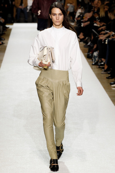 La directrice artistique de Chloé, Clare Waight Keller, est connue pour développer une alliance féminine et masculine dans ses collections. Cette nouvelle collection Automne/Hiver 2014 adopte un troisième élément ainsi : le sauvage. Tous les regards se posent sur ce côté féminin fait des tissus mous et lâches tels que la soie, et s’attardent également sur le style boyish avec les coupes classiques de Chloé. Le côté sauvage s’invente avec différents matériaux comme le léopard et les bottines en peau de mouton.