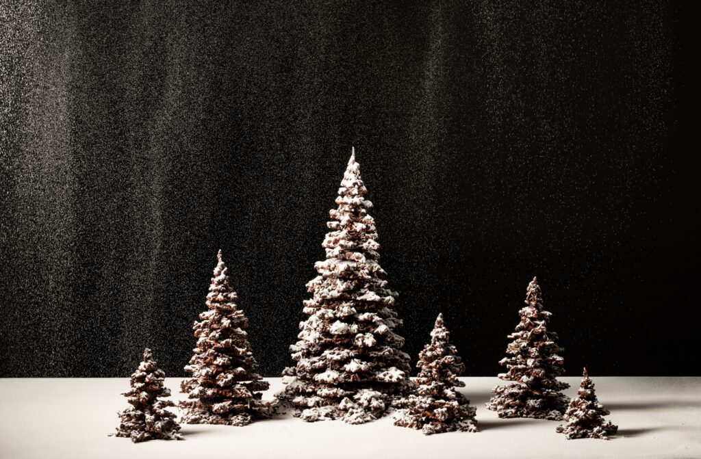 Un sapin aux allures de conte de fées — d’autant qu’il se dévore tout entier… Voici peut-être l’icône de cette collection. Une collection où la plus gourmande des rêveries peut se satisfaire. A l’instar de la couronne de houx, qui se dévore, aussi, toute entière.
