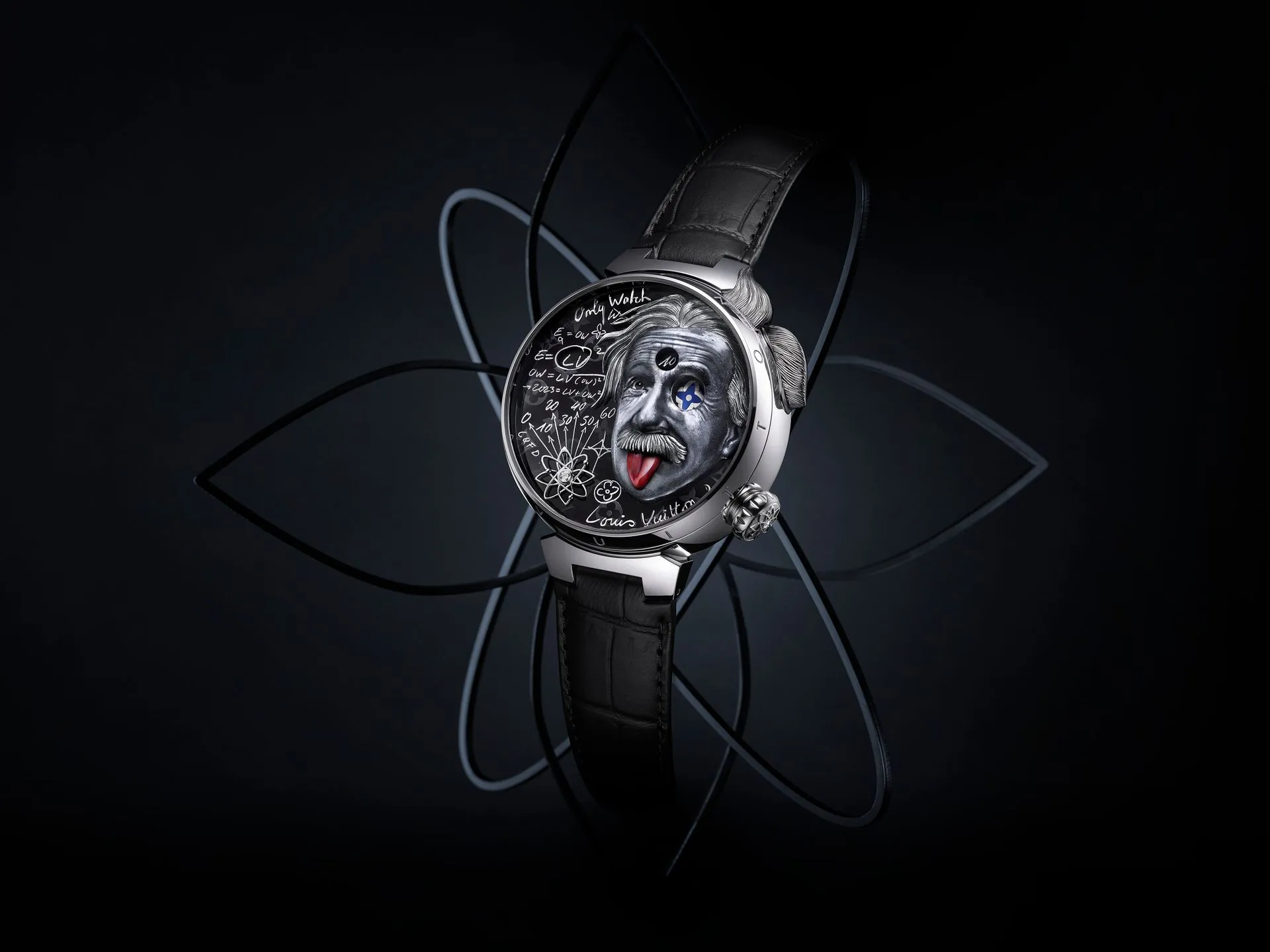 La Louis Vuitton Tambour Einstein est une montre très spéciale. Un bijou de savoir-faire créé spécialement pour la vente caritative Only Watch 2023.