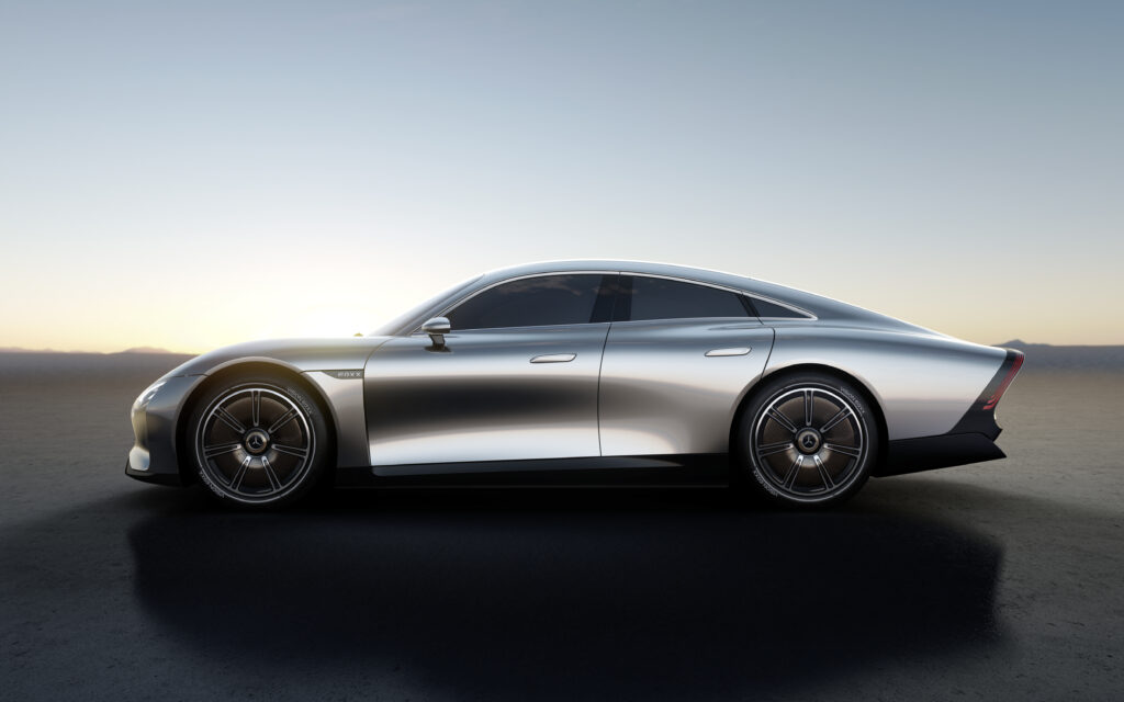 Avec la complicité des équipes de Formule 1 et de Formule E, il a fallu 18 mois aux ingénieurs pour développer un moteur d’environ 200 chevaux et qui ne consommerait que 10 kWh/100 kilomètres. Ce groupe motopropulseur, qui utilise des composants de la Mercedes-AMG One, est associé à une batterie XXL de 100 kWh avec une architecture de 900 V. Mercedes annonce qu’elle est 50 % plus petite et 30 % plus légère que la batterie de la Mercedes EQS. De plus, elle ne pèse que 495 kilos, portant ainsi le poids total de ce concept à seulement 1 750 kilos. Un poids plume pour une grande berline électrique.