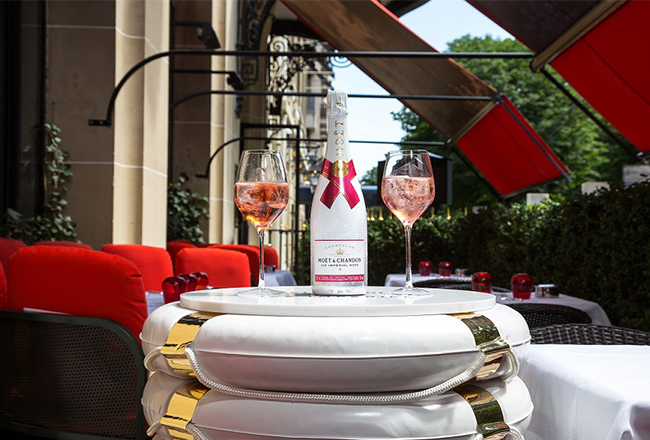 De juillet à fin septembre 2016, la terrasse du palace invite ainsi les amateurs de champagne en recherche d’expériences nouvelles à découvrir, au-delà de toute la gamme des champagnes Moët & Chandon, un nouveau venu dans l’univers des nectars, le Moët Ice Impérial Rosé. Au contact de la glace, ce champagne exalte ses saveurs estivales les plus secrètes et les plus subtiles. Sublimé par l’atmosphère intimiste du lieu qui, à l’ombre des stores rouges, embarque les convives vers les contrées des songes, le Moët Ice Impérial a cela d’exceptionnelle qu’il peut envoûter l’esprit et le palais, et ce, en toute légèreté.