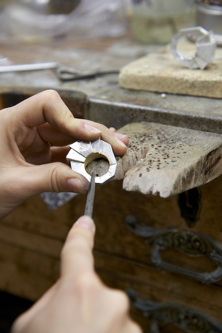 Je pense à un collier en forme de cygne sur lequel nous avons dû coller 2200 strass, aussi à un somptueux collier de serpents entrelacés en chaînes et émail. Nous avons réédité à l’identique un collier et un bracelet des années 50 dans la technique du chatonnage, un travail de Titan….