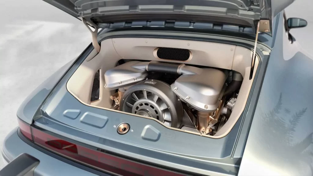 Sous le capot, contrairement à ce que l’on pourrait croire, il n’y a rien de si extravagant. La Turbo Study est pourvue d’un six cylindres à plat de 3,8 litres de cylindrée, bi-turbo, capable de développer pas moins de 450 chevaux. Le travail de Singer est si exceptionnel, que Porsche vient d’ailleurs de signer un accord avec Singer pour lui fournir des moteurs fabriqués par sa division Motorsport North America