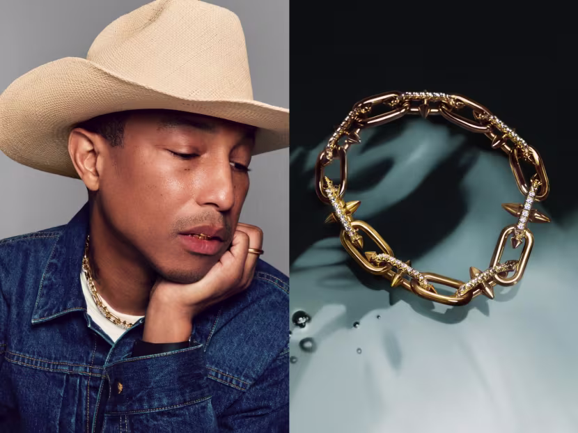 Tiffany & Co. x Pharrell Williams. Pharrell Williams, directeur artistique des collections homme de Louis Vuitton, poursuit son exploration créative en s’associant à Tiffany & Co. pour une collaboration joaillière d’envergure. Baptisée Tiffany Titan, cette collection audacieuse et inspirée de la mythologie marine convoque l’imaginaire de Poséidon et de son trident, symbole de puissance et de mystère.