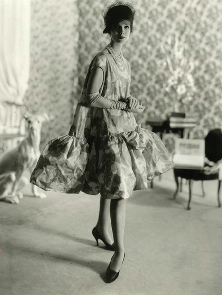 Le style tout en épure et les lignes en mouvements tant travaillés par Balenciaga se reflète dans la robe qui marqua esprits et couturiers. La robe Baby-Doll. Elle représente l’aboutissement d’une ligne, fruit des recherches de Balenciaga centrées sur le contour de la ceinture, pour créer une nouvelle silhouette. Elle est le résultat d’un long chemin d’expérimentation initié dès ses débuts.