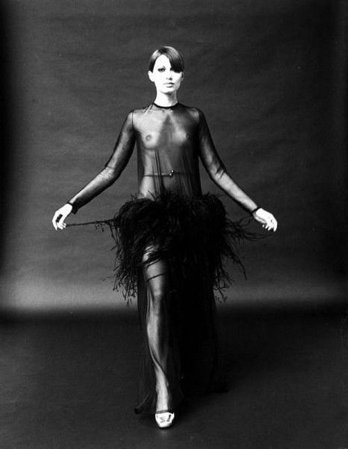 En 1965, il accompagne ainsi le mouvement pop et l’avènement de la jeunesse en s’inspirant directement des peintres. C’est la robe Mondrian qui associe l’art à la mode. En 1966, il rend à la femme le pouvoir de sensualité de sa poitrine. Mettant de côté l’aspect biologique, il expose partiellement la poitrine de la femme sous une robe de chiffon, en organdi… Un See-through qui fera école puisque trois ans plus tard, c’est une blouse See-Through qui accompagne son iconique tailleur pantalon.