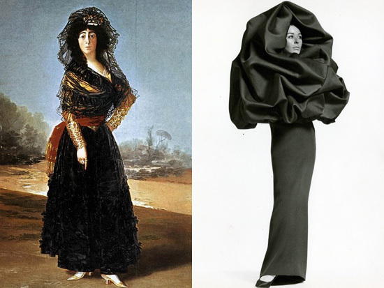 En effet, la mode grand siècle l’inspire. Et c’est notamment dans les peintres de l’âge d’or Espagnol qu’il pioche ses visions esthétiques. La filiation esthétique la plus connue de Balenciaga est celle avec le peintre Vélasquez.