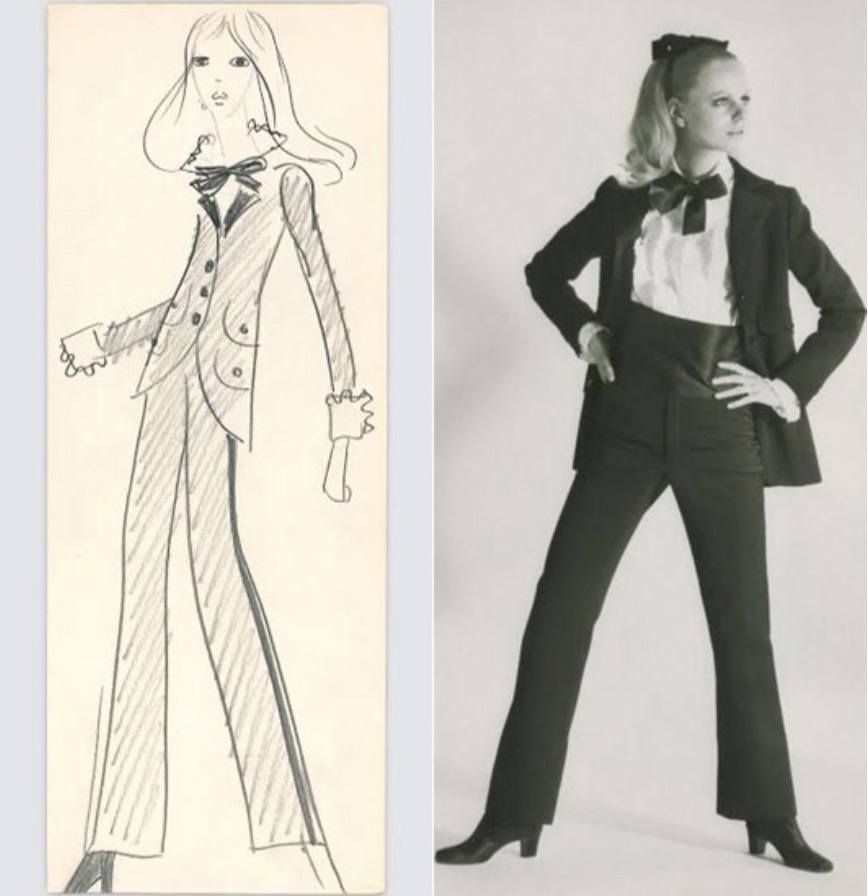 Lors de son défilé en 1966 en effet, le couturier bouscule les normes en introduisant le Smoking. Le tout premier costume destiné aux femmes. La seconde vague féministe ayant tout juste débutée, le costume pour dames demeurait une alternative controversée à la petite robe noire.